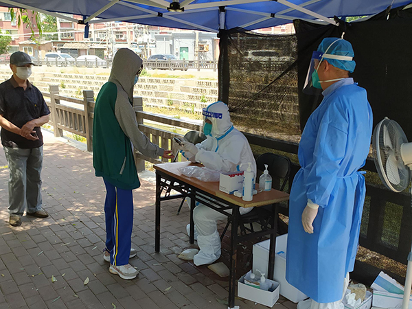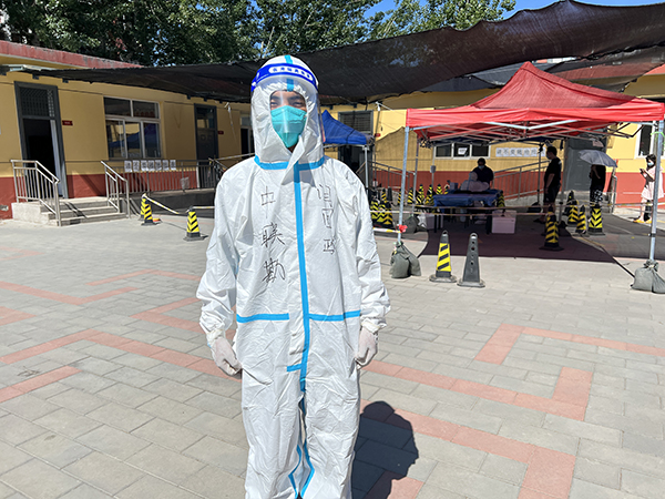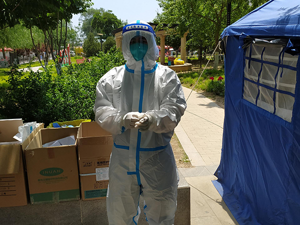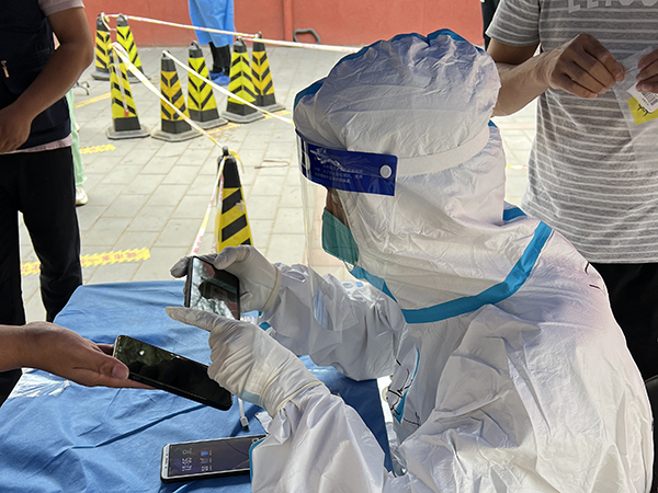 人员到位后,在社区党委的统筹安排下,四名志愿者在5月28日和5月29日积极参与到核酸检测工作的各个环节中去。身份信息登记、现场秩序维护、收集试剂、核对数量、搬运试剂箱,采样点位到处都能看到我司员工的身影,他们穿上密不透风的防护服,在连日高温的恶劣天气下尽职尽责、全力以赴,保持头脑清晰,严格确保居民核酸信息采集的准确性,与辛苦奋战在抗议一线的基层干部和医护人员并肩作战,共筑堡垒。