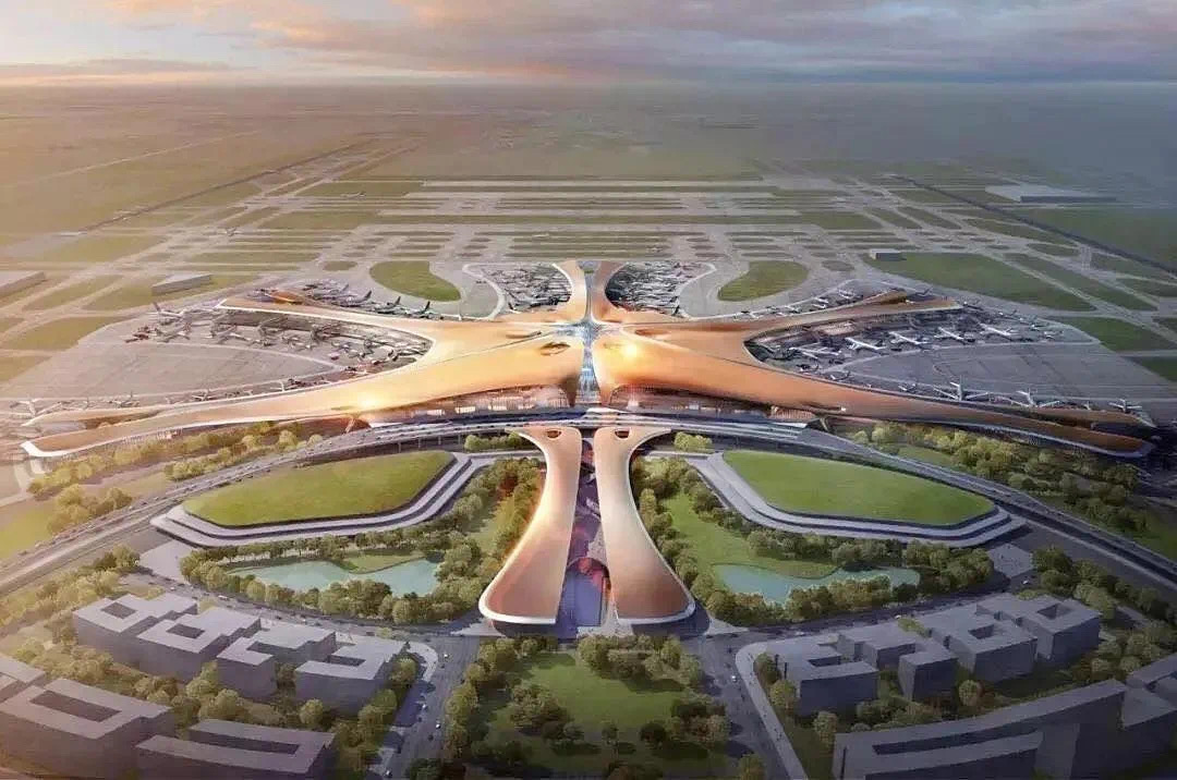大兴国际机场外形流畅的曲线,如同一只手掌托起新时代的希望,评为“新世界七大奇迹”之首。