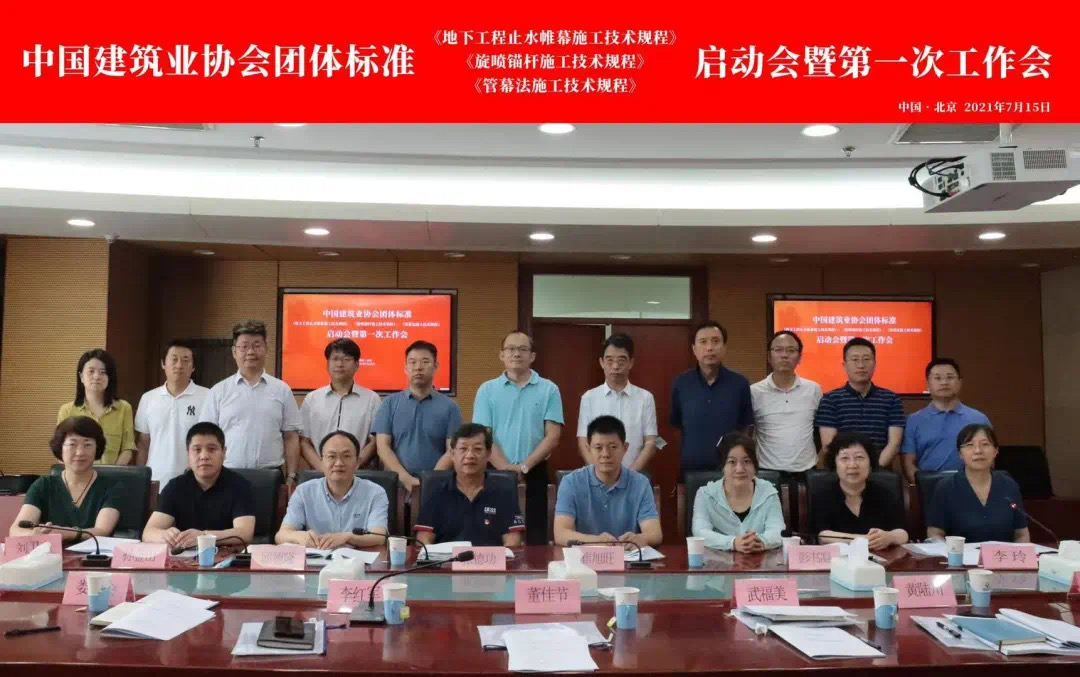 2021年7月15日,北京中联勘工程技术有限责任公司参加中国建筑业协会团体标准第一次会议,参编两个重要规程,分别是:地下工程止水帷幕施工技术通用标准《地下工程止水帷幕施工技术规程》(以下简称“止水帷幕规程”)以及定旋喷锚杆施工技术通用标准《旋喷锚杆施工技术规程》(以下简称“旋喷锚杆规程”)。均由北京城建集团有限责任公司、北京城建中南土木工程集团有限公司正式发布,并于印发之日起施行。