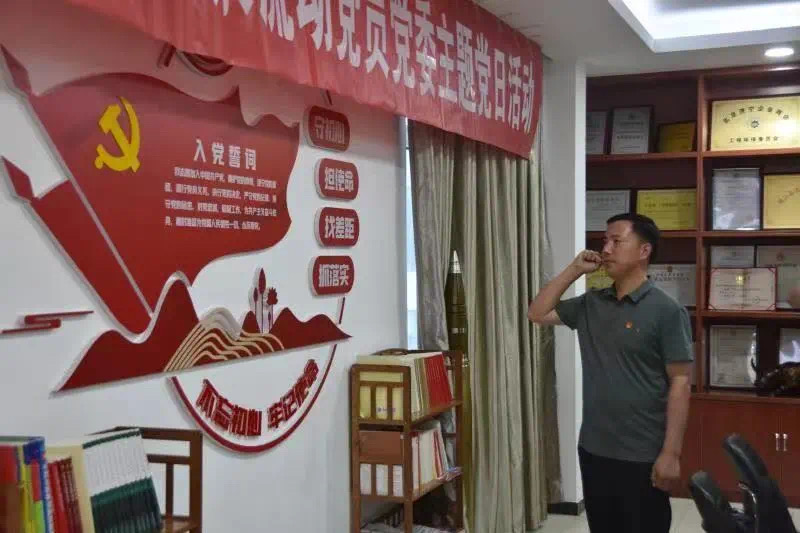 铿锵恢宏的誓词,强烈震撼着在场的每一位党员,一字一句,神圣而豪迈,铮铮誓言,体现了党员同志们对中国共产党的无限忠诚,坚定了全体党员奋斗初心,努力践行入党使命。