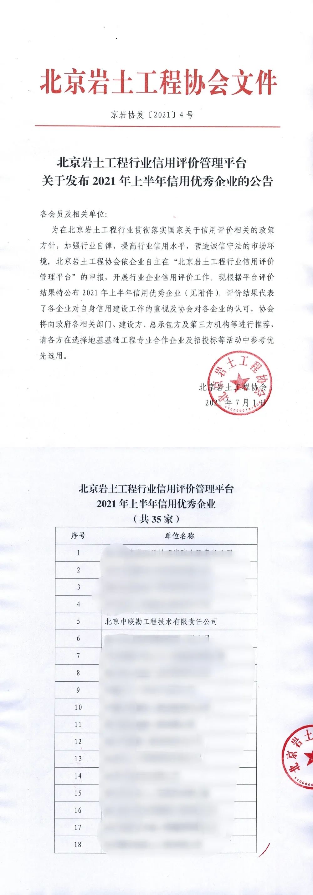 也是中联勘在工程建设和行业信誉上不断努力所取得的优异成果。