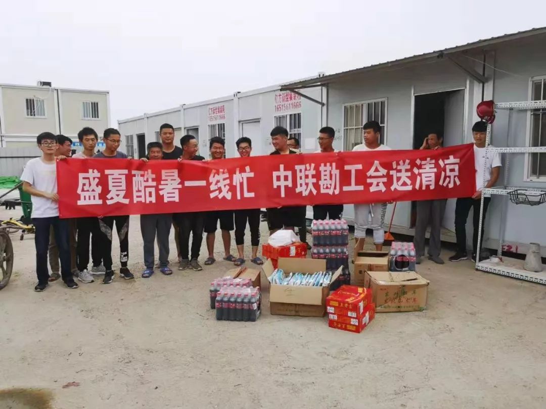 北京中联勘工会主席岳国清,带领中联勘工会班子成员和各部门负责人,带着防暑降温物品,到中联勘多个工程项目(顺义临河项目、西红门项目、新机场管廊等)高温作业场所,开展“盛夏酷暑一线忙,中联勘工会送清凉”清凉活动,为坚持在工作一线的职工送去关爱。