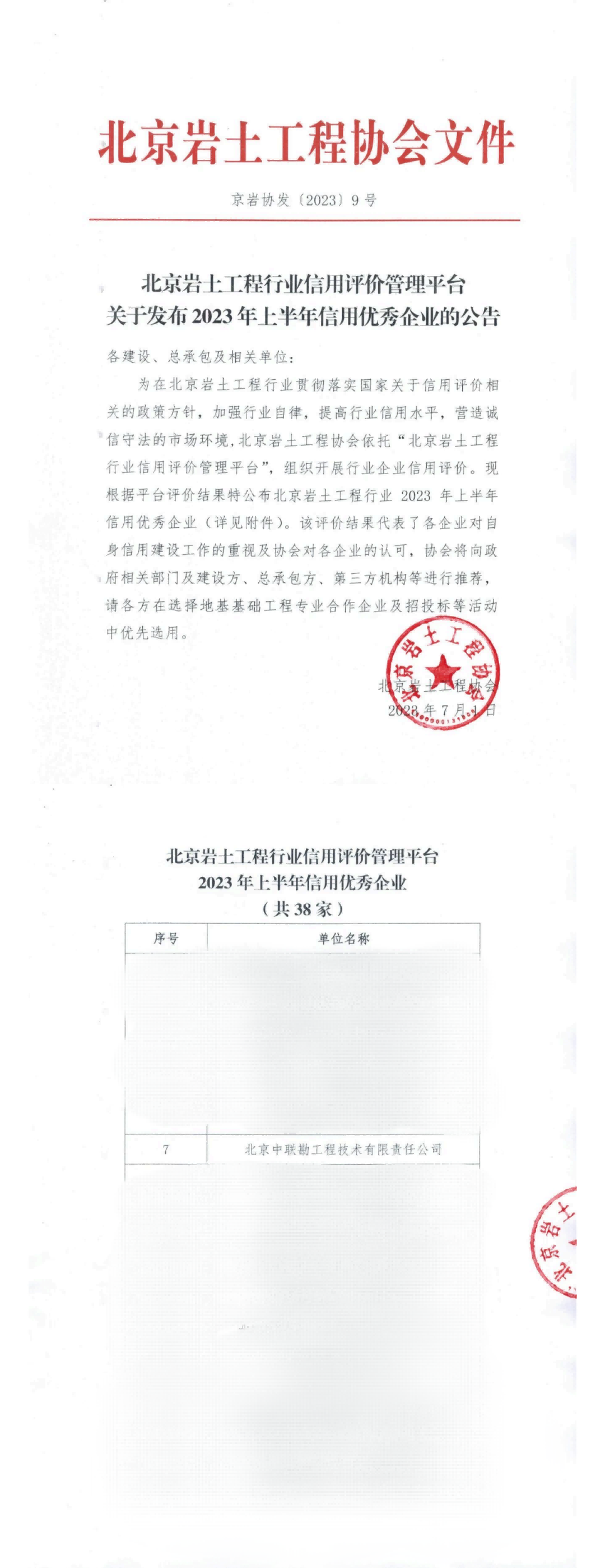 本评价结果更新于7月1日,详情可登录“北京岩土工程行业信用评价管理平台”查看