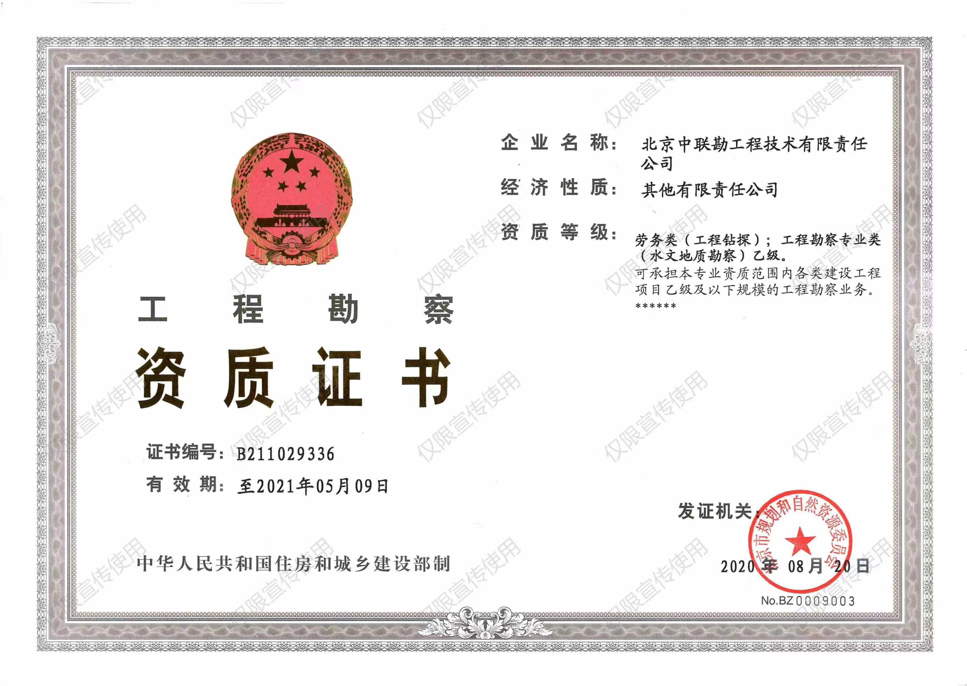 劳务类(工程钻探);工程勘察专业类(水文地质勘察)乙级