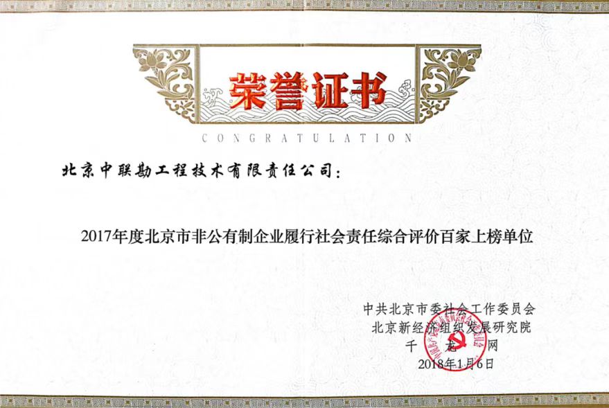 2017年度北京市非公有制企业履行社会责任综合评价百家上榜单位